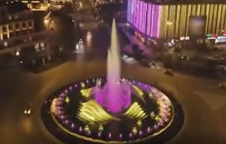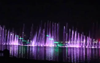 汝州市广成河水生态公园内喷泉总投资1000多万,目前安装调试正式运行,现场播放三段不同的音乐