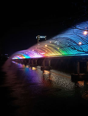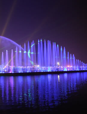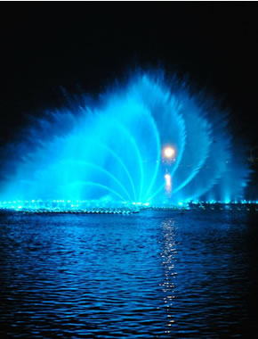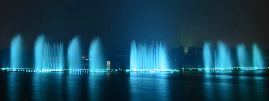东湖湿地公园湖面音乐喷泉总投资2000万元,东湖湿地音乐喷泉共分为长方形音乐喷泉和圆形音乐喷泉两部分