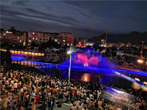 苏溪大陈江音乐喷泉、水幕,不断变换的组合呈现带来全新的感官体验,吸引了数以万计的观赏者,呈现一派祥和景象。