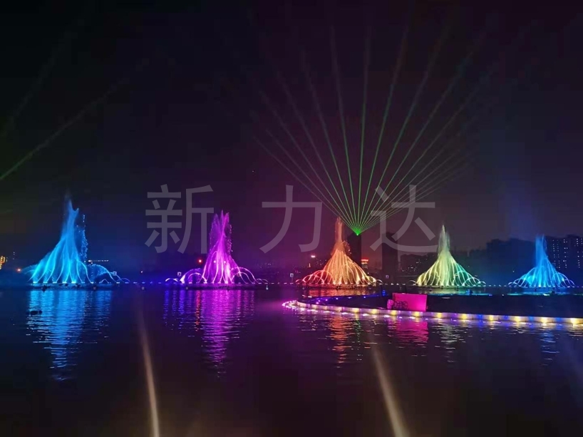 我公司承建的驻马店人民公园水景项目共分为湖面大型激光水舞秀、椭圆形舞台彩色喷泉、大看台景观彩色喷泉、湖中三组特制高喷、观光步行道沿岸雾森水景等五组水景。其中激光水舞秀项目,秉承人与自然同生共舞。设计长200米*宽40米的湖面音乐喷泉,圆形布局,鸟语花香,